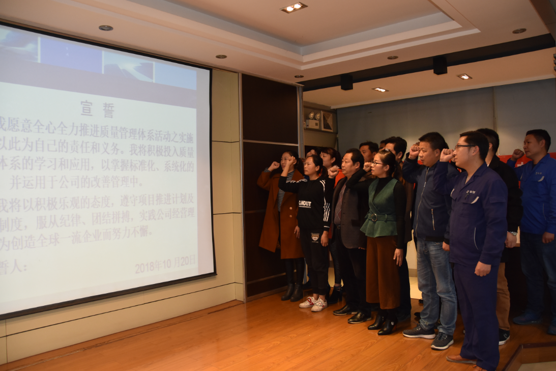 公司總裁楊永明強調了質量管理體系對于企業(yè)生存發(fā)展的重要性,特別是在現今經濟環(huán)境下,質量管理體系提升項目更是順應企業(yè)發(fā)展需要的必然之舉。同時,楊總裁就公司下一步推行質量管理體系提升工作提出了幾點要求,要求全體員工提高認識、端正態(tài)度、加強學習、狠抓落實、積極推進、協調進行,在公司內部形成“以質量標準為綱、以滿足客戶需求”的氛圍。